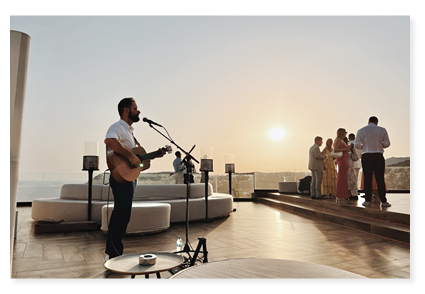 We met Louis in Santorini and I just KNEW he had to perform at our wedding! Louis was a brilliant mix of friendly and professional and we really couldnt recommend him enough. Everything was top notch and his performance was amazing!! He executed our entrance/exit songs and playlist perfectly, and even strummed the guitar quietly and beautifully throughout our vows. A cherry on top! In addition to having an unforgettable wedding, we can now call Louis a friend! See you in Santorini, Louis. We truly thank you from the bottom of our hearts!! Xxx - Laura & Nikos